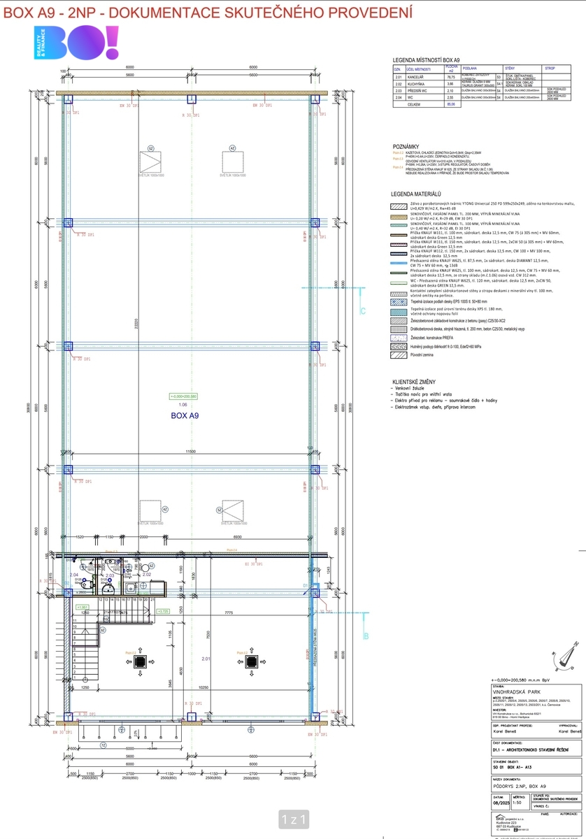 Box je dispozičně rozdělen na administrativně-obchodní část (2. podlaží) v přední části a halovou část v zadní části, vhodnou pro sklad, výrobu či prodej. Každá jednotka má vlastní vjezd i vstup, venkovní plochu pro parkování a manipulaci a zajištěný bezproblémový příjezd i pro kamionovou dopravu.