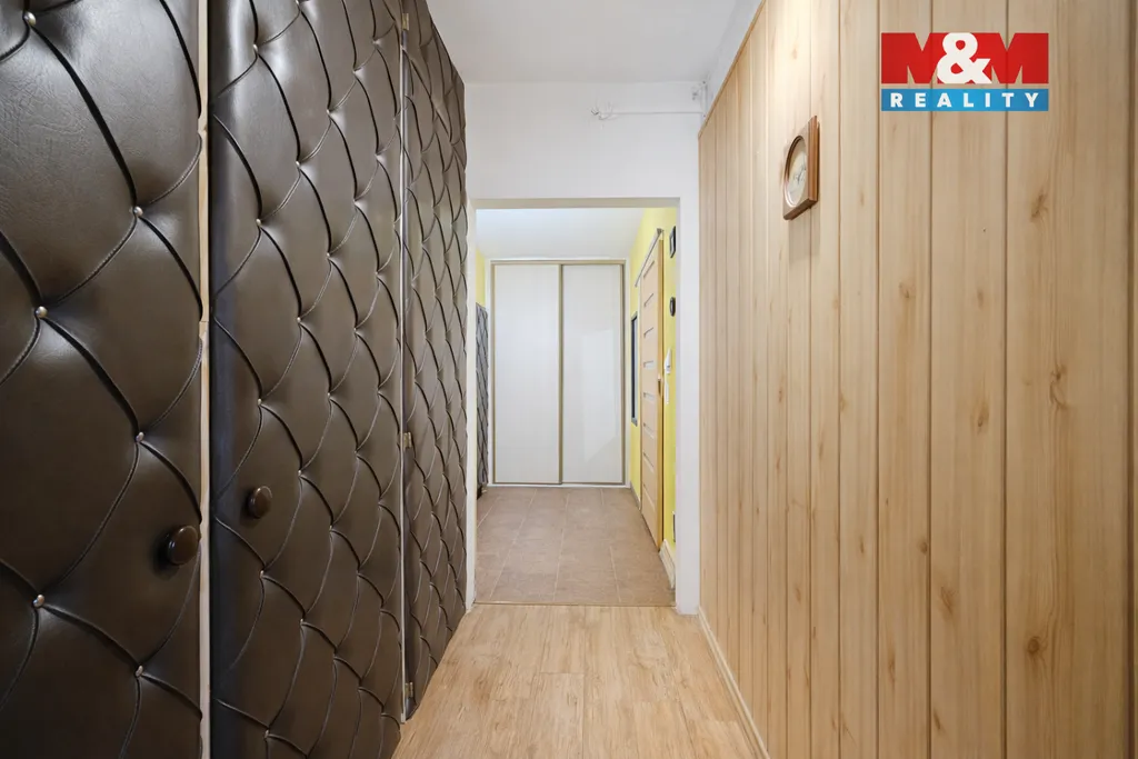 Dispozice bytu je velmi praktická – z prostorné chodby s vestavěnými skříněmi je vstup do všech tří pokojů, koupelny a samostatného WC. Z obývacího pokoje je vstup do kuchyně a na zasklenou lodžii. K bytu náleží sklepní kóje.