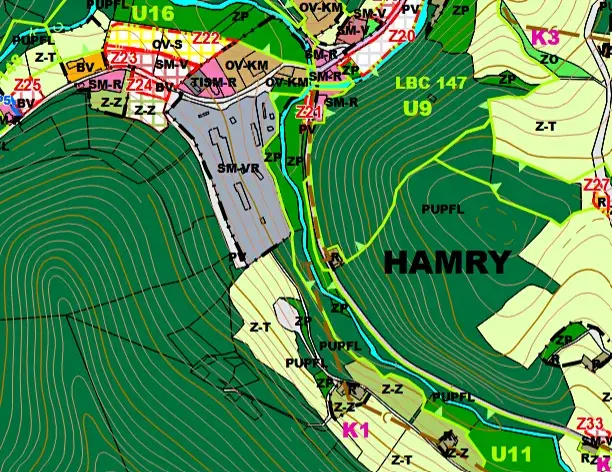 Dle územního plánu se pozemky nachází v plochách smíšených