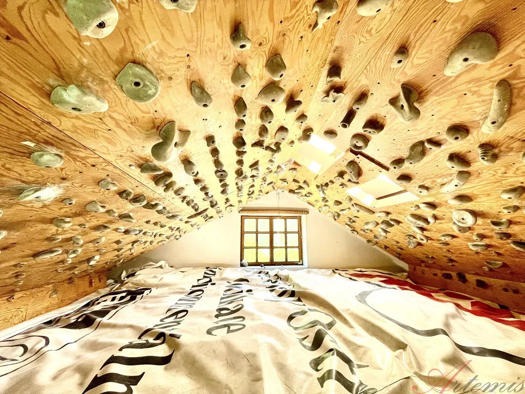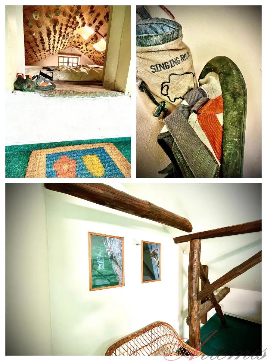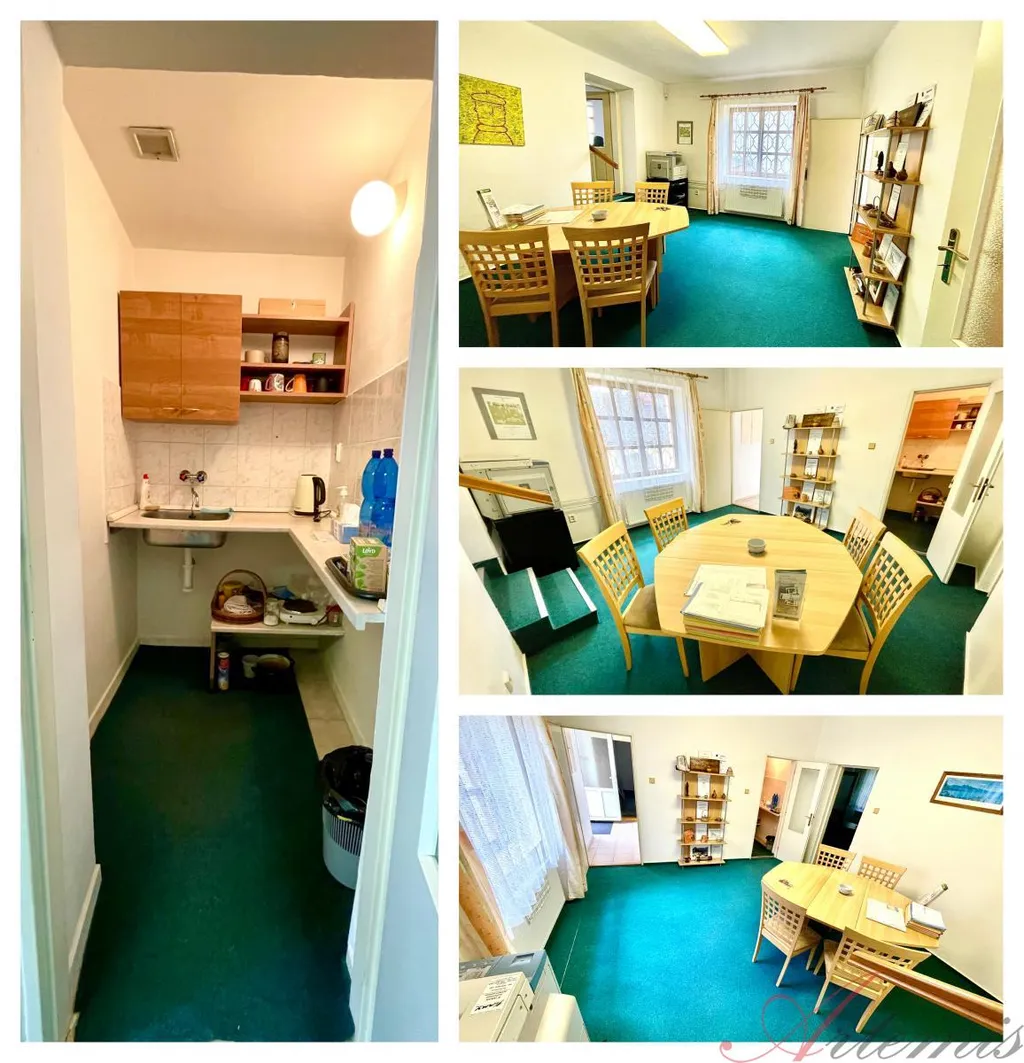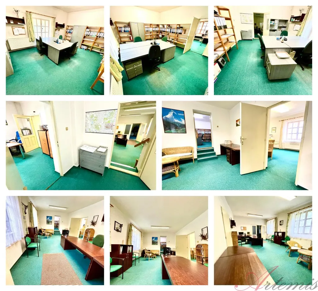 V 1.NP je vstupní hala, kuchyňka, dvě koupelny + 2 WC, šest prostorných místností - aktuálně využívaných coby kanceláře, technická místnost a chodba, navazující na podkroví. V podkroví je pak koupelna + WC, tři prostorné místosti a boulderingová stěna.