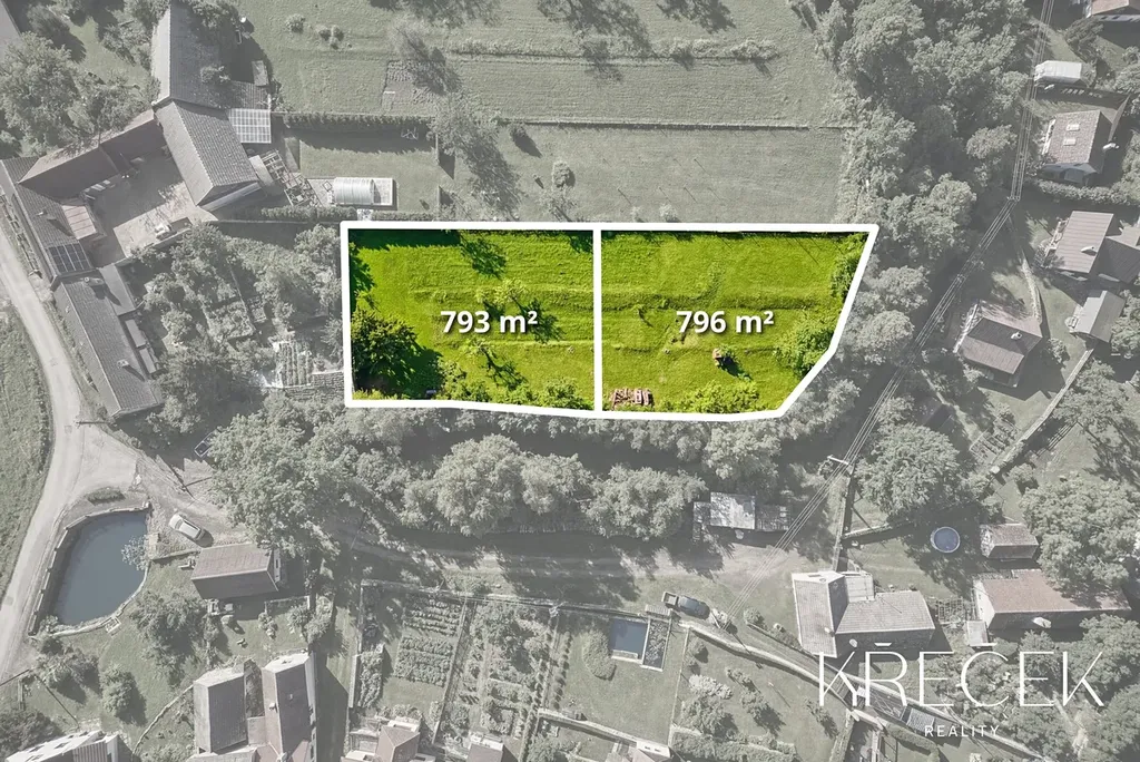 Pozemky tvoří jeden funkční celek, který je ideální jak pro individuální výstavbu, tak pro menší developerský projekt.