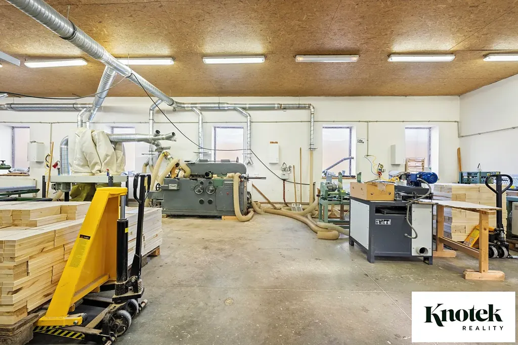 - BUDOVA SE SUŠÁRNOU DŘEVA, KANCELÁŘEMI, SKLADY, GARÁŽÍ A SOCIÁLNÍM ZÁZEMÍM