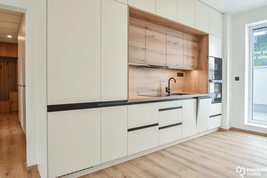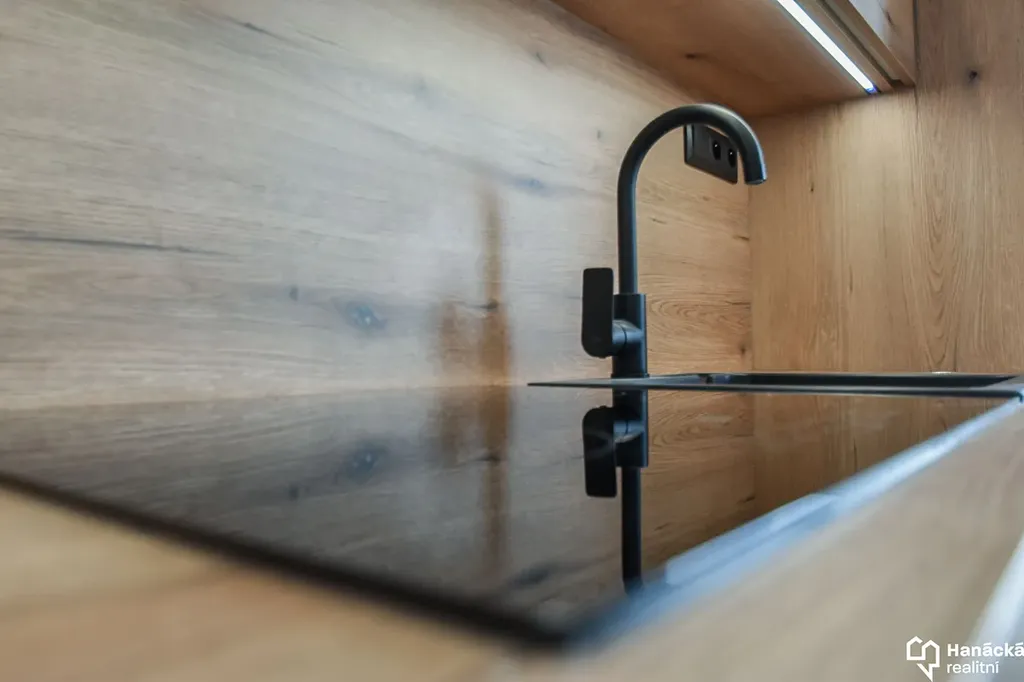 - Prostorná kuchyně se spotřebiči (elektrická trouba, indukce, myčka nádobí, mikrovlnná trouba, lednice s mrazákem).