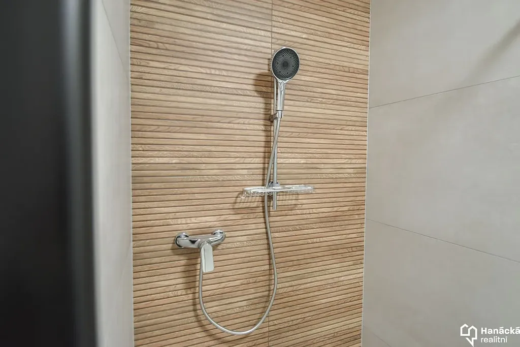 - Koupelna se sprchovým koutem, toaletou, stěnovým a podlahovým vytápěním.
