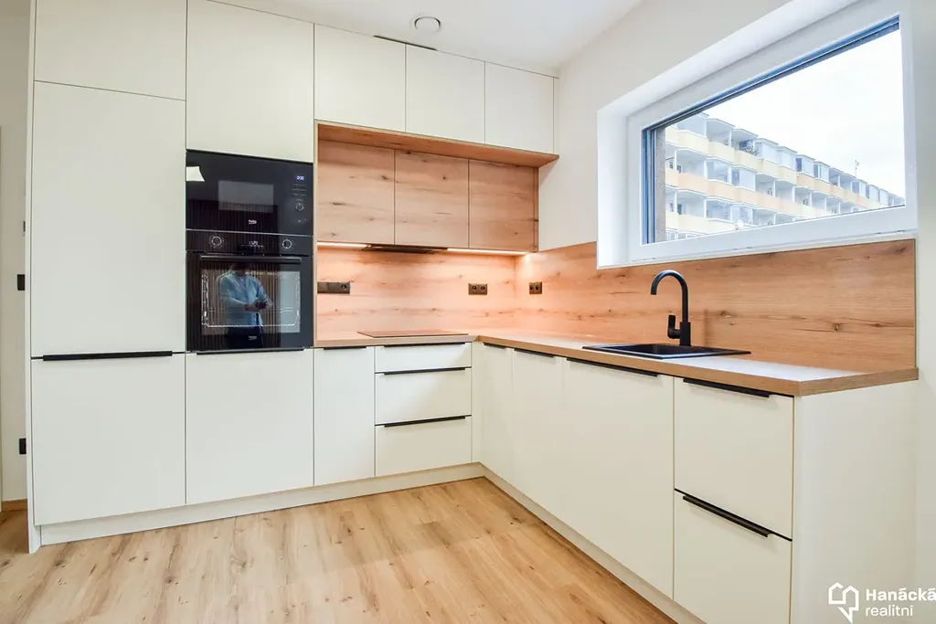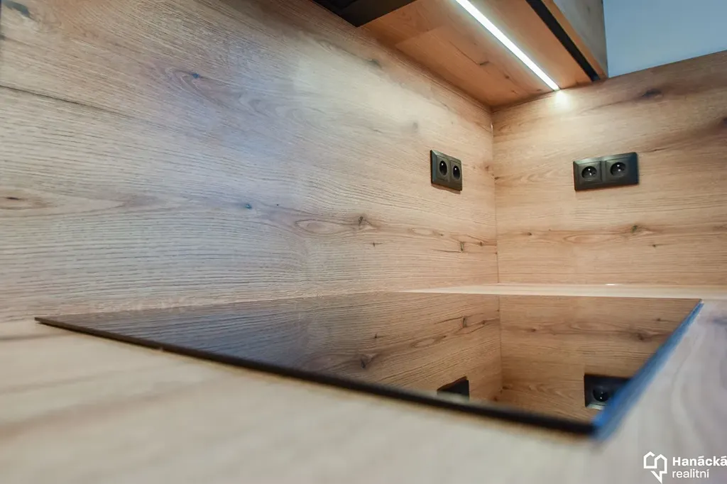 - Prostorná kuchyně se spotřebiči (elektrická trouba, indukce, myčka nádobí, mikrovlnná trouba, lednice s mrazákem).