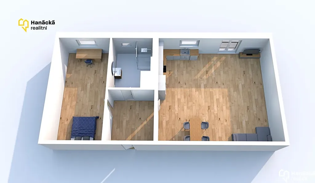 Byt je o dispozici 2+kk s výměrou 61 m².