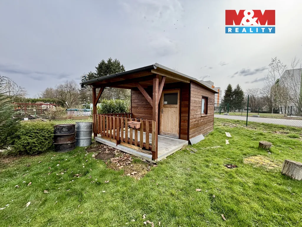 Součástí zahrady je dřevěná chatka s možností přespání o rozměrech 3×3,5 m, která poskytuje příjemné zázemí pro víkendový odpočinek. Na chatku navazuje terasa o velikosti, ideální pro posezení s rodinou či přáteli. Dále se na pozemku nachází praktická kůlna na nářadí a zavedený vodovod s pitnou vodou.