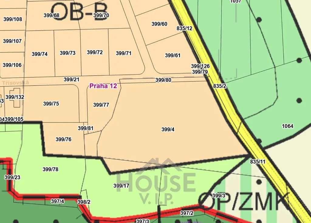 K prodeji nabízíme unikátní soubor pozemků o celkové výměře 15.939 m² v atraktivní a rozvíjející se lokalitě Praha 12 - Točná. Z toho přibližně 9.675 m² tvoří stavební část v plochách dle územního plánu OB-B (čistě obytné území), určených primárně pro výstavbu rodinných domů.