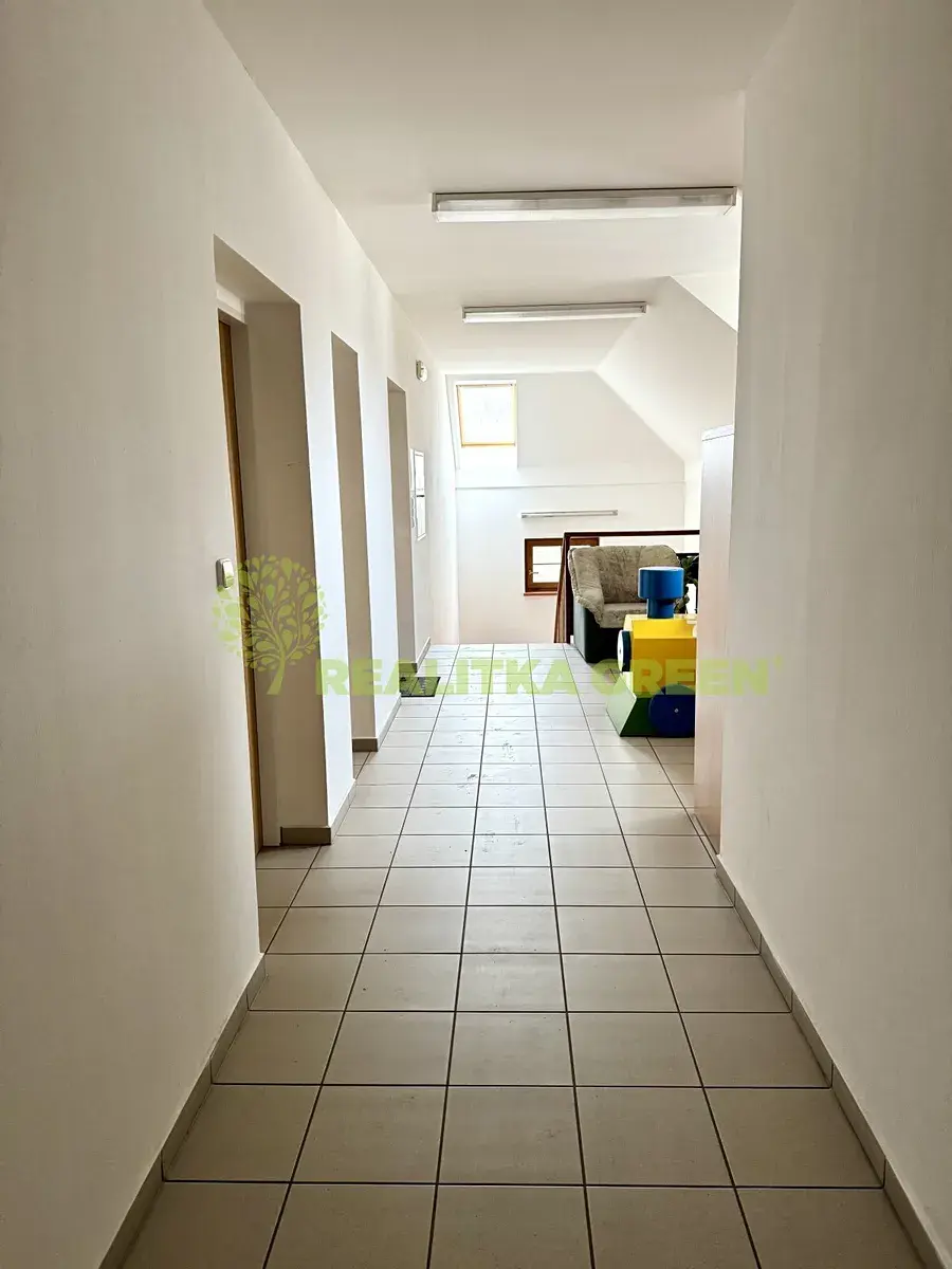 Dispozičně: vstupní chodba, koupelna se sprchovým koutem, samostatné wc, pokoj společný s kuchyňským koutem.
