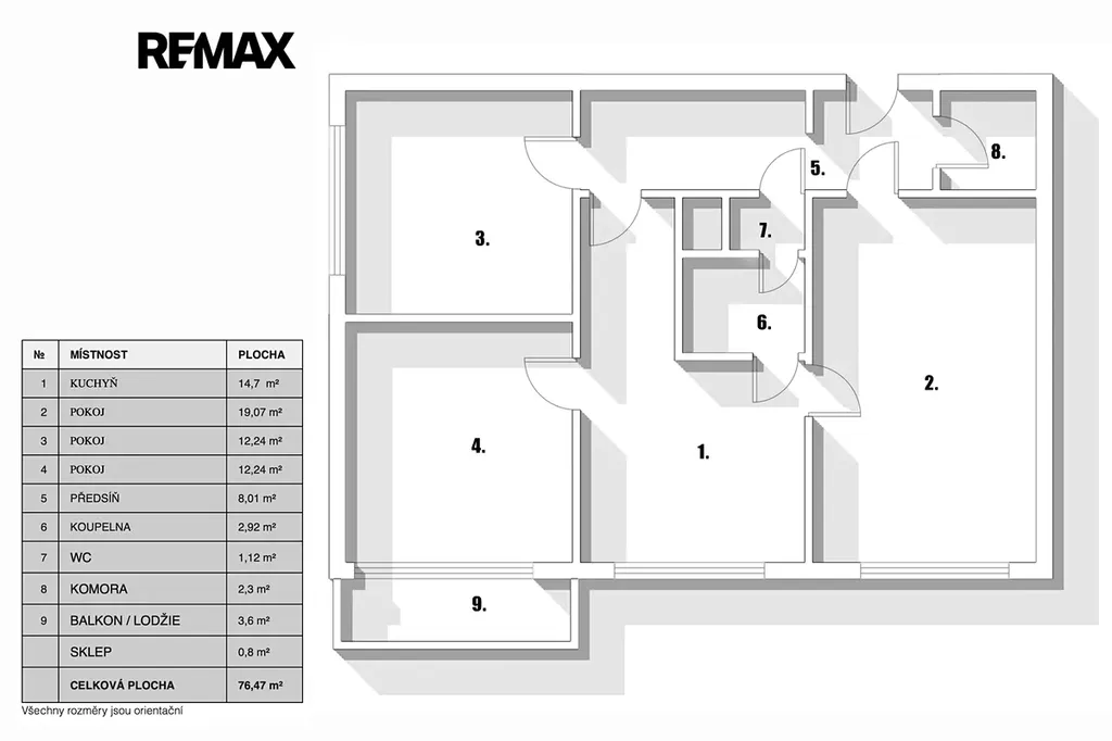Orientace bytu je převážně na západ, jedná se o teplý a světlý byt.