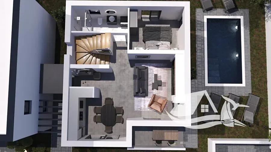 V jedné z nejvyhledávanějších částí istrijského letoviska Medulin se nachází moderní novostavba, která nabízí vyváženou kombinaci klidného bydlení u moře a dlouhodobého investičního potenciálu. Nemovitost je součástí menšího rezidenčního projektu tvořeného třemi samostatnými domy, přičemž každý má vlastní vstup, dvě parkovací stání a soukromou zahradu, která vytváří ideální prostor pro odpočinek, letní posezení i trávení času s rodinou.