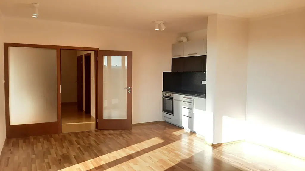 Pronájem nového bytu 3+kk/L, Chodov, Praha 4, ul. Babická. Útulný byt o rozloze 80 m2 s terasou 14 m2. Částečné zařízený, nacházející se v 3. nadzemním podlaží nového domu. Tichá lokalita v blízkosti stanice metra Chodov. K bytu je sklepní koje a parkovací stání.