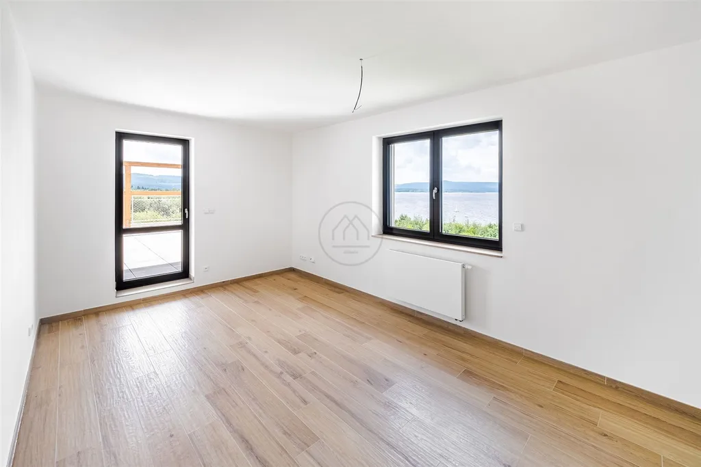 Jednotka je promyšleně navržena a sestává ze zádveří, moderní koupelny s WC a prostorného obývacího pokoje s kuchyňským koutem. Hlavní dominantou je přímý vstup na terasu o rozloze 58 m², která nabízí dechberoucí panoramatický výhled na vodní hladinu. Dispozici doplňuje světlá ložnice a nadstandardně velká sklepní kóje v suterénu budovy.