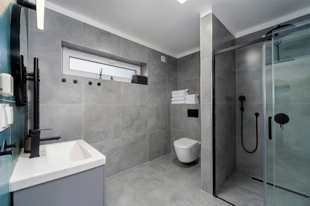 Z obou jednotek je zajištěn vstup na betonovou terasu a vlastní oplocenou zahradu se zahradním domkem, která nabízí ideální zázemí pro relaxaci. Jedná se o novostavbu z roku 2023 s energetickou náročností třídy B – velmi úsporná. Interiér i technologie odpovídají vysokému standardu: vytápění je napojeno na chytrou domácnost LOXONE pro efektivní správu na dálku a přístup do apartmánů zajišťují chytré zámky Nuki. Parkování se nachází přímo před domem.