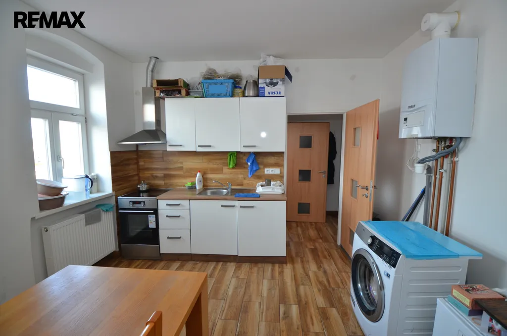 Nabízený byt se skládá ze vstupní předsíně, dvou pokojů z nichž jeden je průchozí. Z předsíně je přístupná koupelna s WC a kuchyně. Kuchyně je vybavena kuchyňskou linkou s vestavěnou troubou, indukční varnou deskou a digestoří.