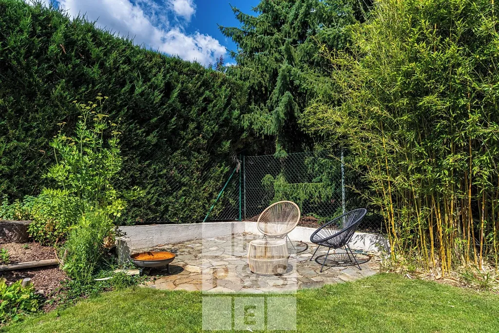 Na pečlivě udržované zahradě najdete klid a soukromí pod vzrostlými stromy, prostor pro relaxaci na 20m² terase i přípravu na venkovní vířivku.