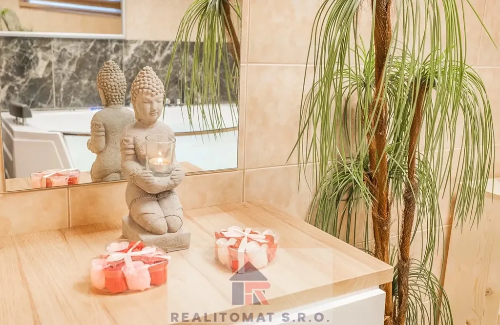 Jednotka je kompletně vybavená a disponuje nadstandardními prvky, jako je finská sauna a hydromasážní vana pro dvě osoby. Jednotka nabízí dvě koupelny s vířívou vanou a druhá koupelna s prostorným sprchovým koutem s hydromasáží a finskou saunou.