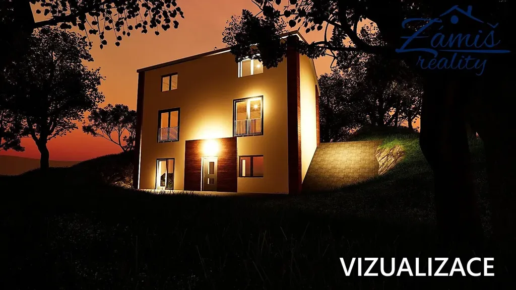 Nerušený výhled do dalekého okolí z jižního svahu s rodinným domem.