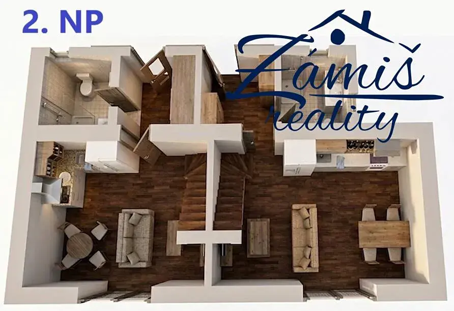 Pro dům máme vytvořenu architektonickou studii - přestavbu na 3 byty, které budou pronajímány. Tato studie je znázorněna na vizualizacích mezi fotografiemi. Ve studii je počítáno i s půdní vestavbou.