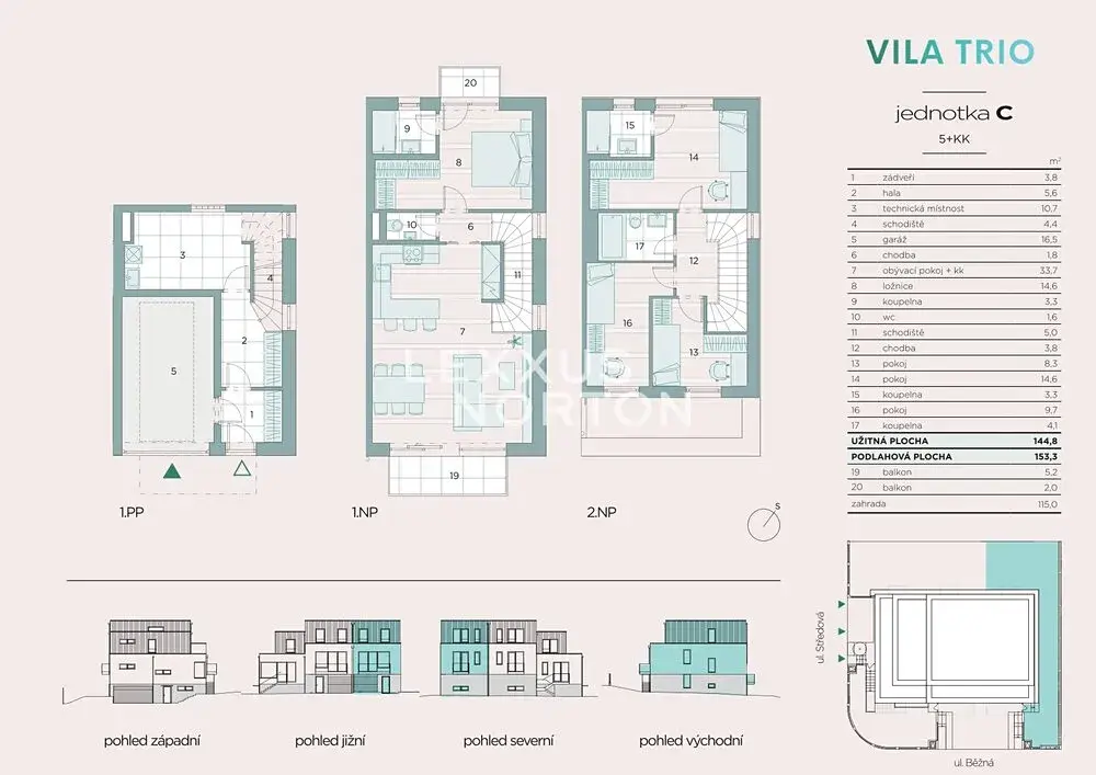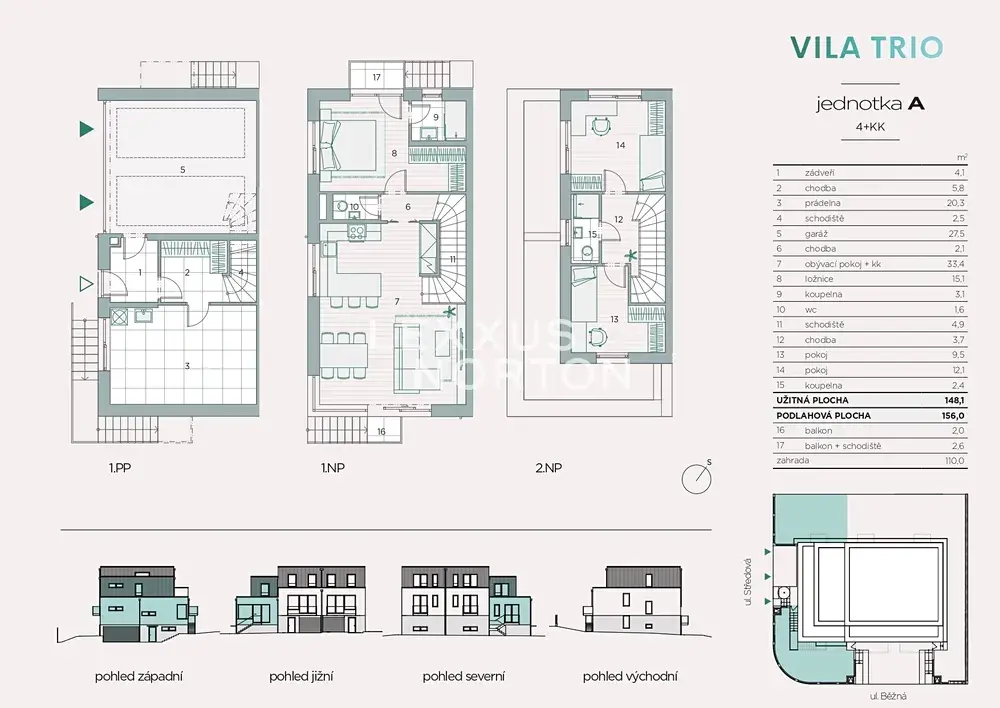 Architektura vychází z elegantního stylu anglických townhouse domů, přičemž při sloučení jednotek A, B a C vzniká unikátní celek splňující nároky i těch nejnáročnějších klientů.