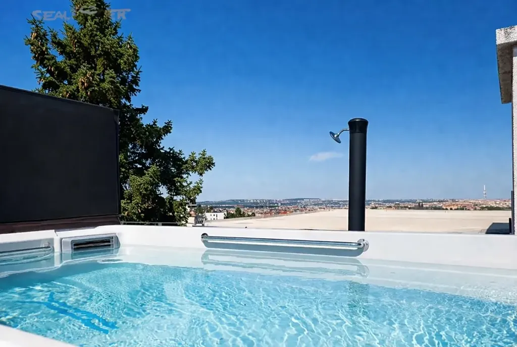 Skutečným unikátem této rezidence je exkluzivní střešní bazén, určený pouze pro rezidenty domu. Nabízí výjimečné místo pro relaxaci a odpočinek s jedinečnými výhledy na panorama Prahy.