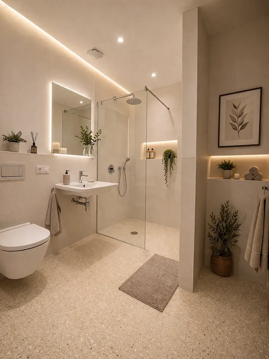 Interiér je dále vybaven vestavěnými skříněmi poskytujícími dostatek úložného prostoru. Podlahy tvoří kvalitní dřevěné parkety v kombinaci s velkoformátovou dlažbou, které podtrhují nadčasový charakter bytu.