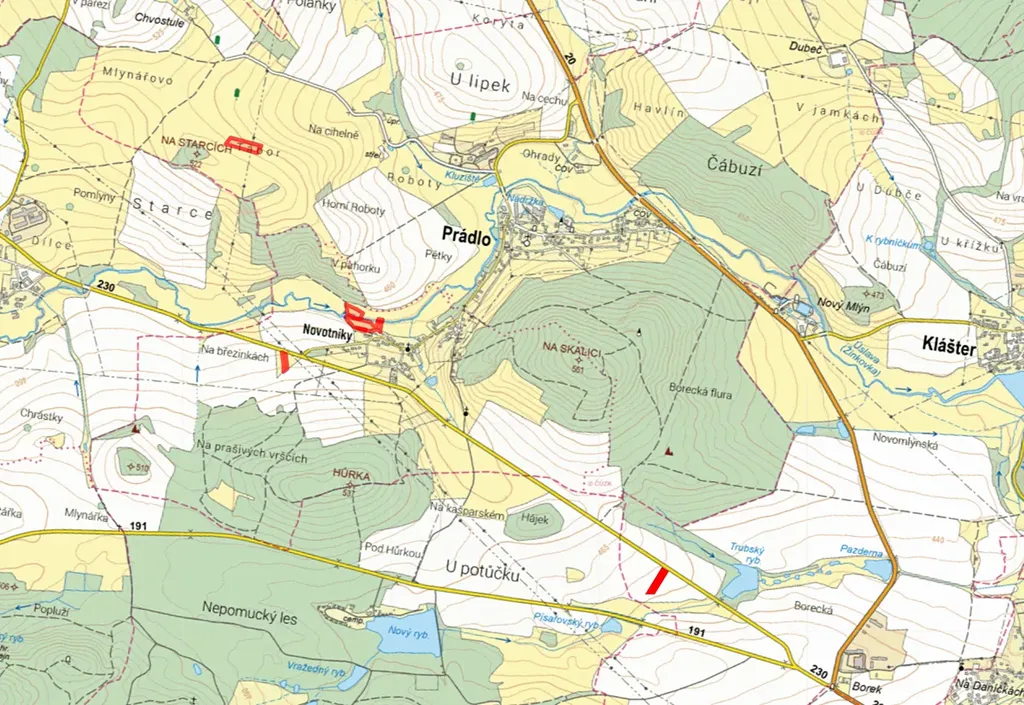 V katastrálních územích Klášter u Nepomuka, Novotníky a Prádlo nabízím k prodeji soubor zemědělských pozemků ve výlučném vlastnictví.