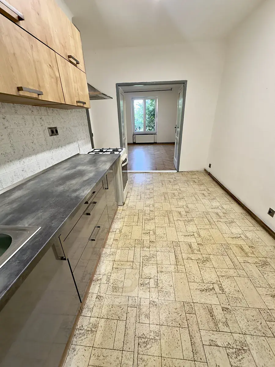 Nabízíme Vám k pronájmu byt 2+1 s obytnou plochou 55 m², situovaný ve zvýšeném přízemí cihlového domu bez výtahu, v ulici Klostermannova. Byt se sestává ze vstupní chodby, komory, koupelny s vanou a toaletou, dvou pokojů a kuchyně s plynovým sporákem, elektrickou troubou a lednicí. Nájemníkům se k dispozici zahrada cca 30 m², v uzamčeném vnitrobloku.