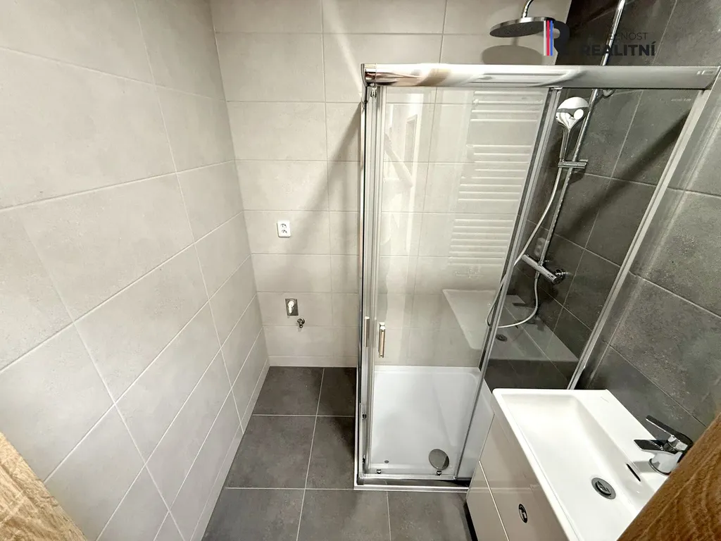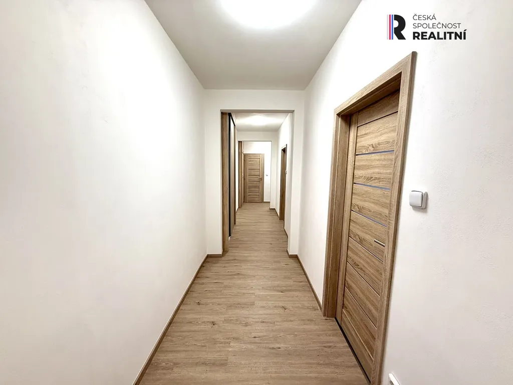 Byt prošel celkovou nákladnou rekonstrukcí – nové vinylové podlahy, moderní interiérové dveře, kuchyňská linka včetně spotřebičů (trouba, varná deska, digestoř), zděné jádro s koupelnou a samostatným WC. Koupelna je vybavena sprchovým koutem a umyvadlem se skříňkou, nechybí ani prostor pro pračku.
