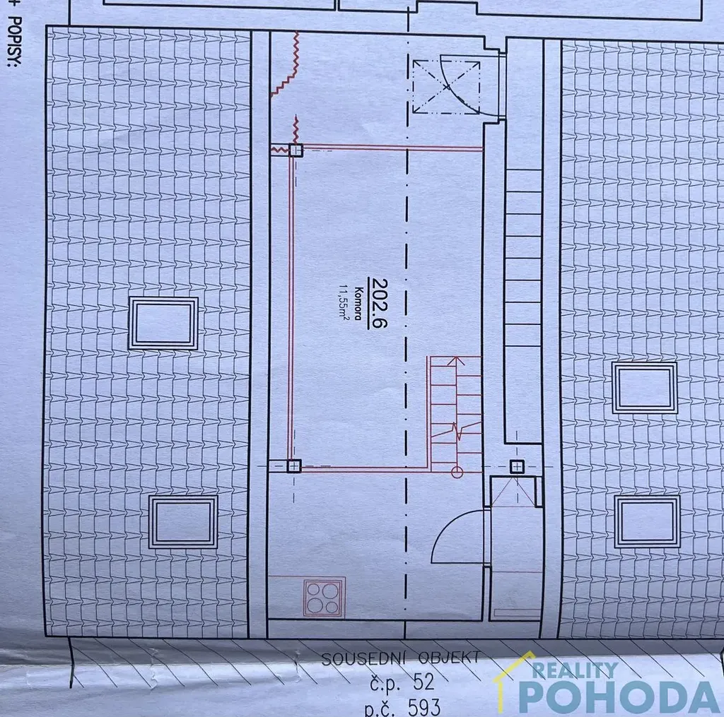 Byt je po kompletní a nákladné rekonstrukci, zcela vybavený. Skládá se z prostorného obývacího pokoje s kuchyňským koutem, z koupelny se sprchovým koutem a wc, vstupní chodby, šatny a menší mezonetová ložnice v podkroví.