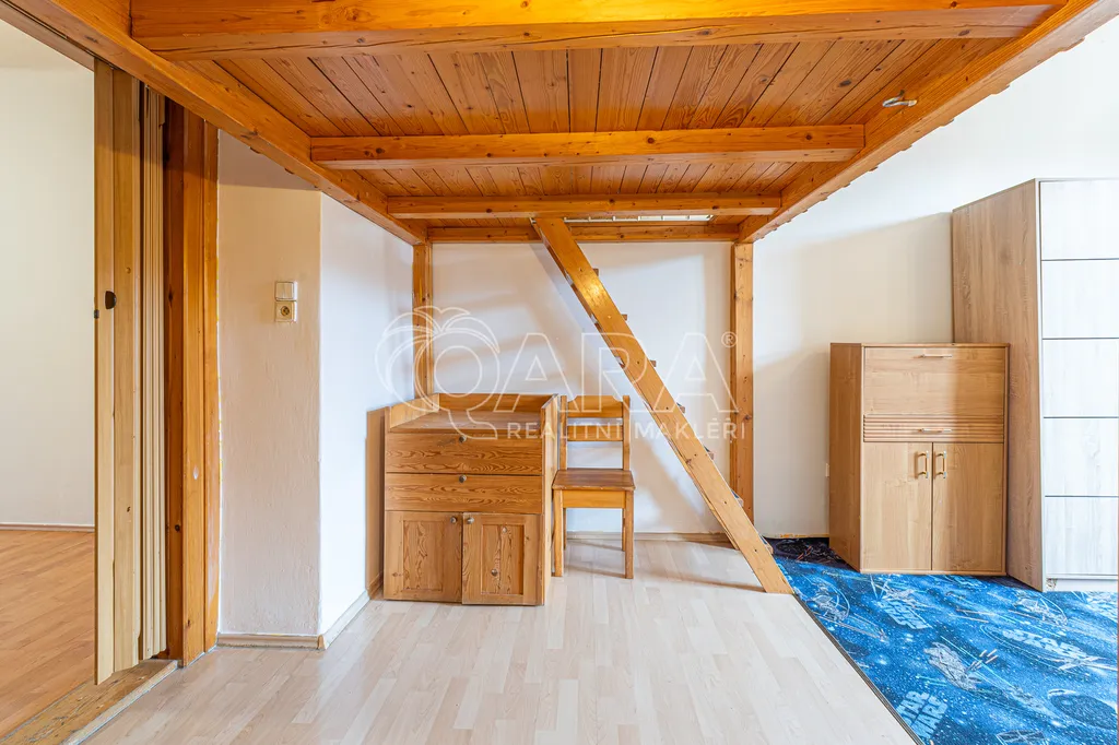 Výška stropů je 2,9 m, což zajišťuje vzdušnost prostoru. V ložnici je patro na spaní.