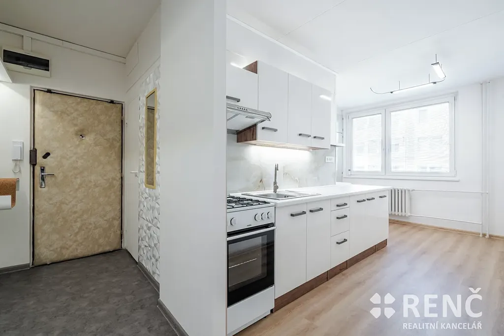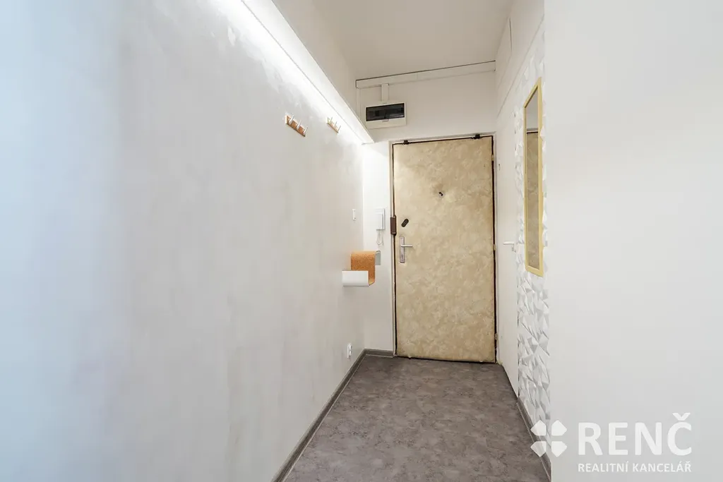 Byt prošel celkovou renovací a je vybaven novou rohovou kuchyňskou linkou, plynovým sporákem, digestoří, spížní skříní a policovým systémem v šatně. V kuchyni je možnost připojení vlastní pračky. Koupelna je vybavena vanou, skříňkou pod umyvadlem a zrcadlovou skříňkou. V předsíni je nová věšáková stěna s poličkou a zrcadlem. Vstupní dveře do bytu jsou bezpečnostní. V kuchyni a koupelně jsou nové rozvody elektřiny.