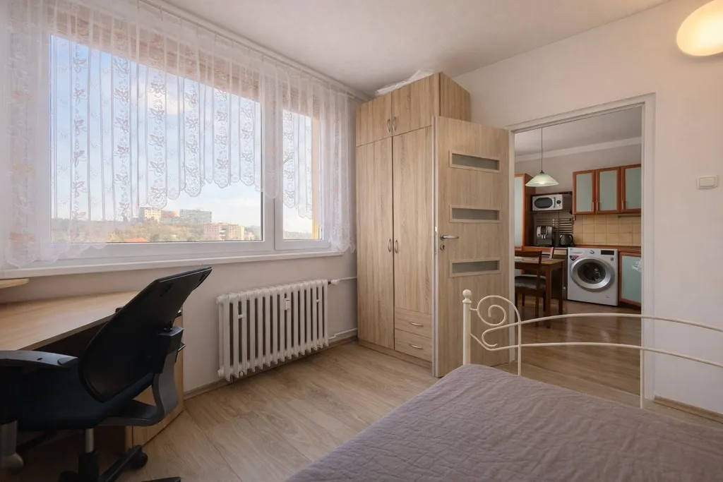 Byt prošel rekonstrukcí přibližně před 18 lety a jeho stav dnes odpovídá době užívání. Interiér bytu již v některých částech nese stopy času a užívání, což nabízí novému majiteli možnost úprav dle vlastních představ. Dispozici tvoří předsíň, koupelna s toaletou, kuchyně s rohovou kuchyňskou linkou a tři pokoje, přičemž k jednomu z nich náleží lodžie. Samozřejmostí jsou plastová okna. Byt je možné ponechat i se zařízením, případně bude předán vyklizený – vše dle dohody.