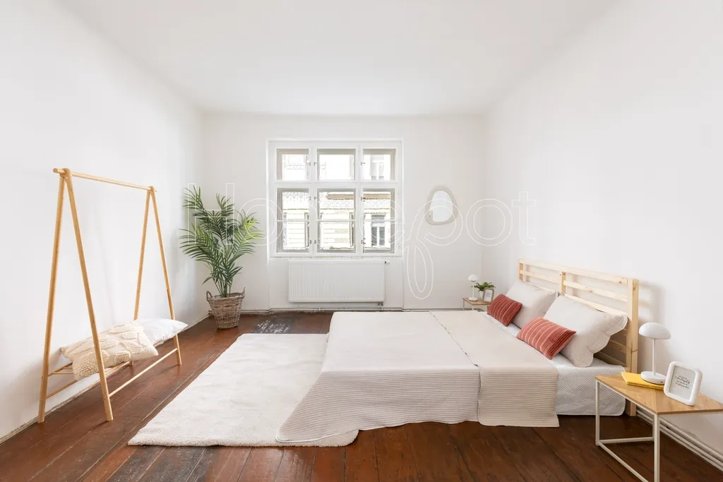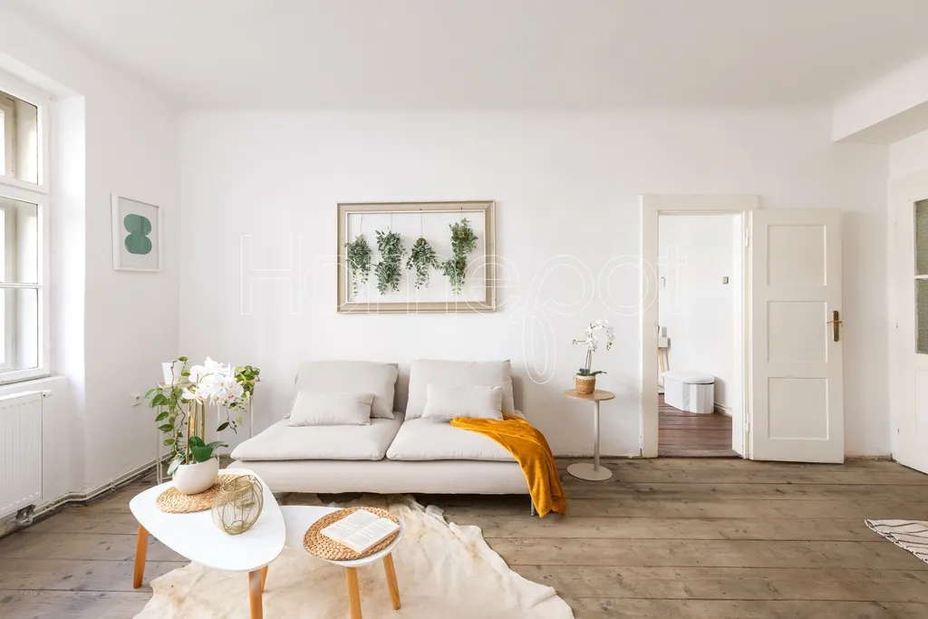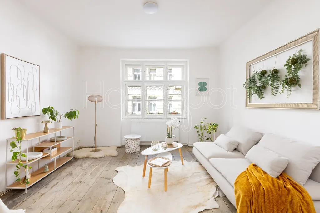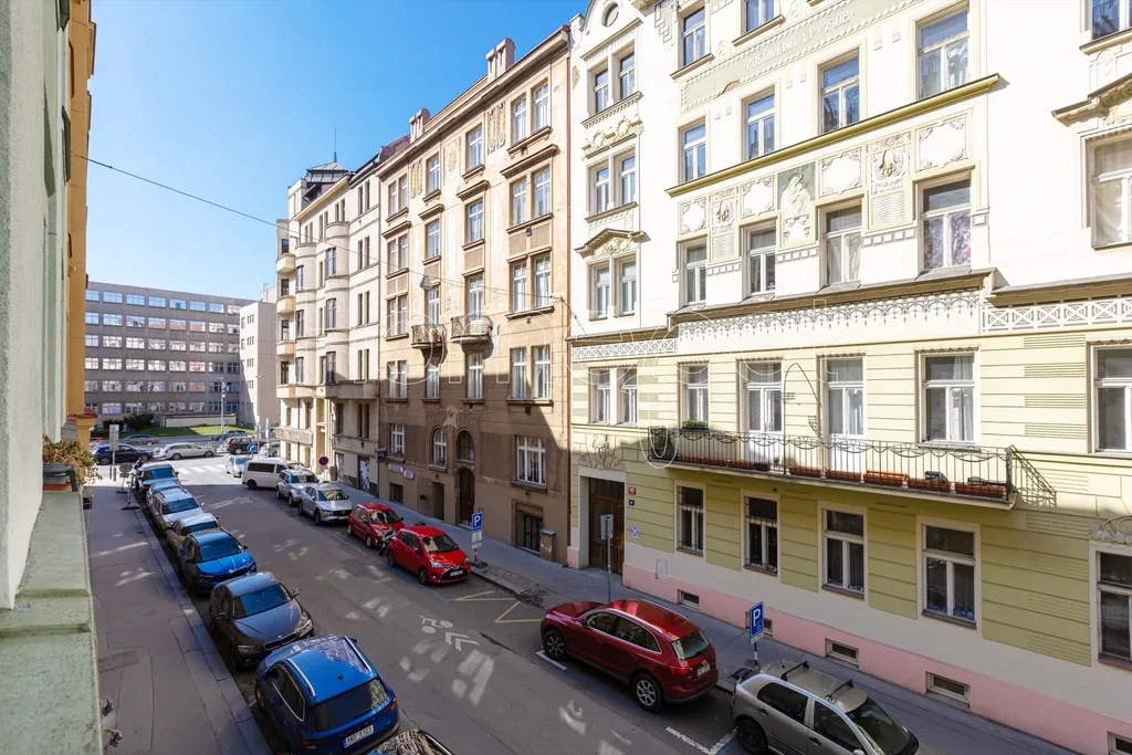 Tento velmi světlý byt, kde světlo během dne dělá svoji práci – ráno je jiné než odpoledne – se nachází ve 2. nadzemním podlaží historického činžovního domu v ulici Jirečkova, v jedné z nejživějších částí Prahy 7. Podlahová plocha činí 53,1 m².