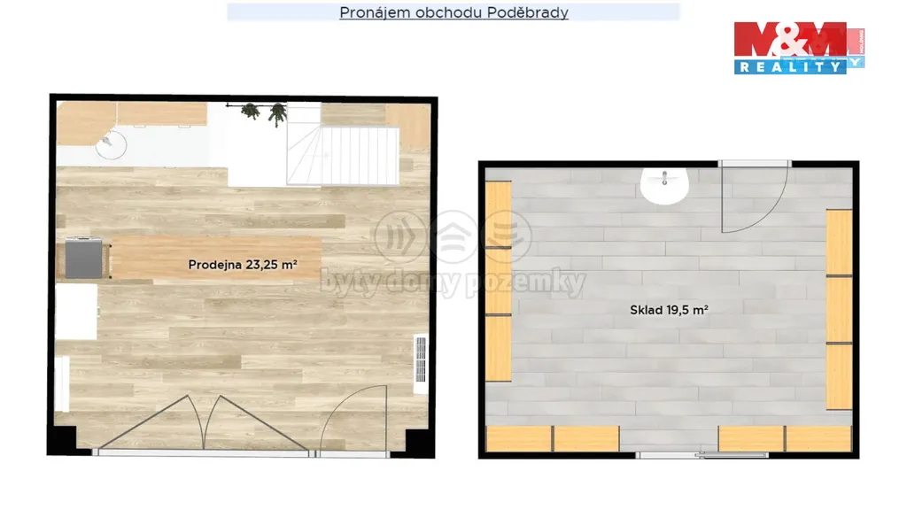Nabízíme vám k pronájmu komerční prostory o celkové výměře 23,25 m² s dalšími prostory o velikosti 19,5 m² například pro sklad. Obchod se nachází na okraji Poděbrad, přesněji u hlavní silnice směrem na Hradec Králové. Prostor je možné využít jako prodejnu, kancelář, bistro, kavárnu, pro poskytování služeb, kosmetický salón, sklad a jiné. Poděbrady jsou lázeňské město s pravidelným celoročním pohybem místních i turistů, což zajišťuje stabilní klientelu a zajímavý potenciál pro podnikání. Výhodou je také dobrá dopravní dostupnost a viditelná poloha u frekventované silnice. Cena pronájmu měsíčně činí 11.000 Kč + energie. Kauce je ve výši dvou měsíčních nájmů a provize RK 15.000 Kč. Více informací vám rád sdělím po telefonu nebo na prohlídce.