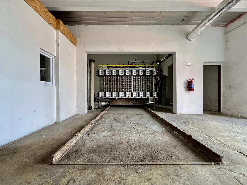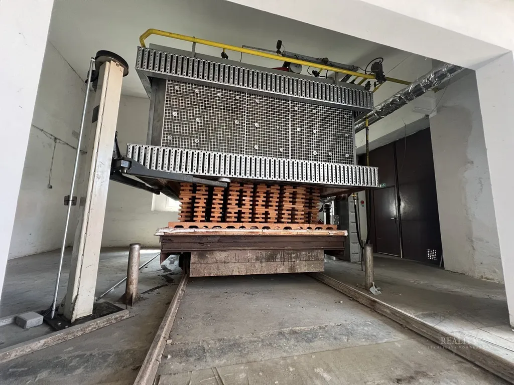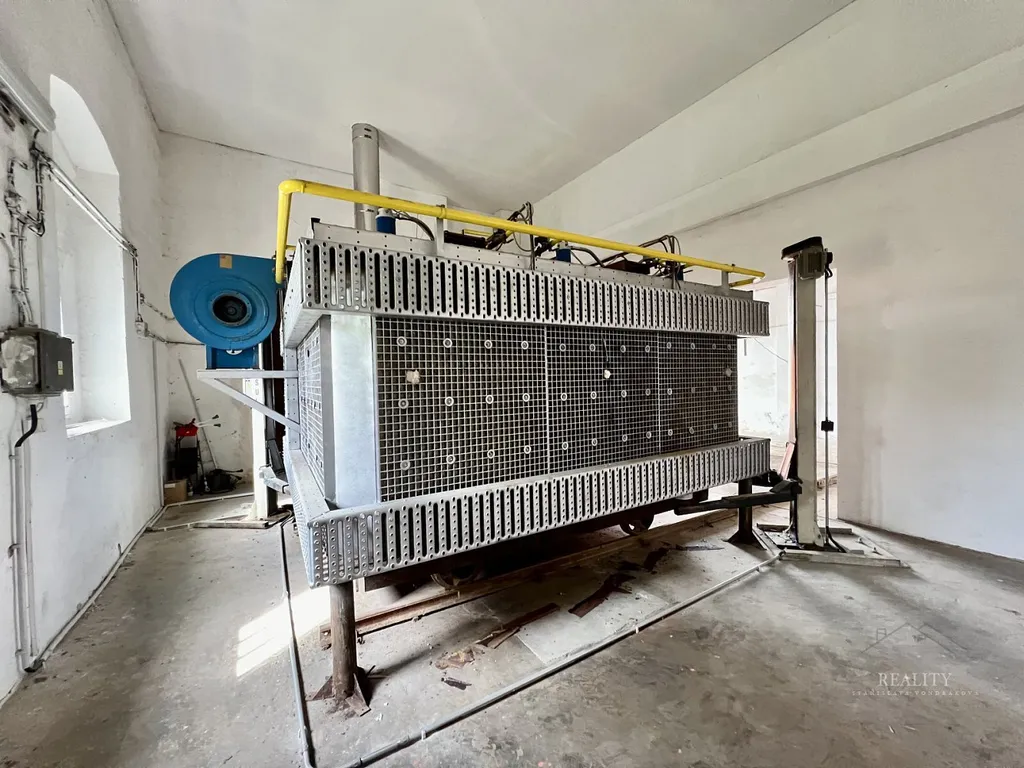 Na inzerovaných fotografiích je částečně zachyceno i původní technologické vybavení. Areál byl v minulosti využíván pro výrobu cihelné dlažby, včetně výpalové pece.