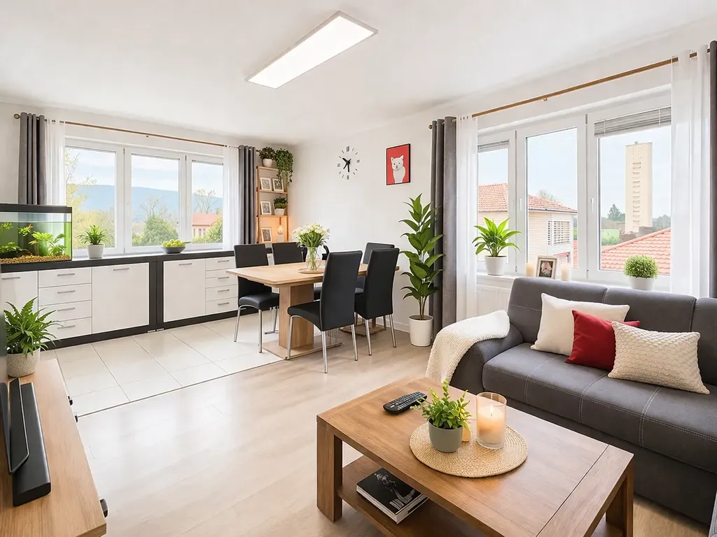 Dispozice bytu nabízí prostorný obývací pokoj, samostatnou kuchyni, ložnici a další pokoj, do kterých je vstup z chodby. Z chodby je dále vstup do koupelny a samostatného WC.