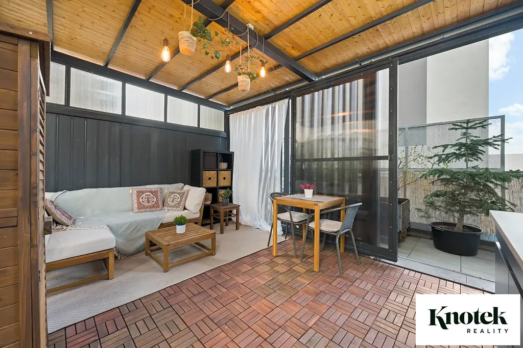 Zatímco jedna část terasy nabízí dostatek místa pro zeleň, posezení i úložný prostor, druhá část zajišťuje maximum soukromí pod moderně zařízenou pergolou, která představuje další prostor pro trávení volného času a relaxaci.