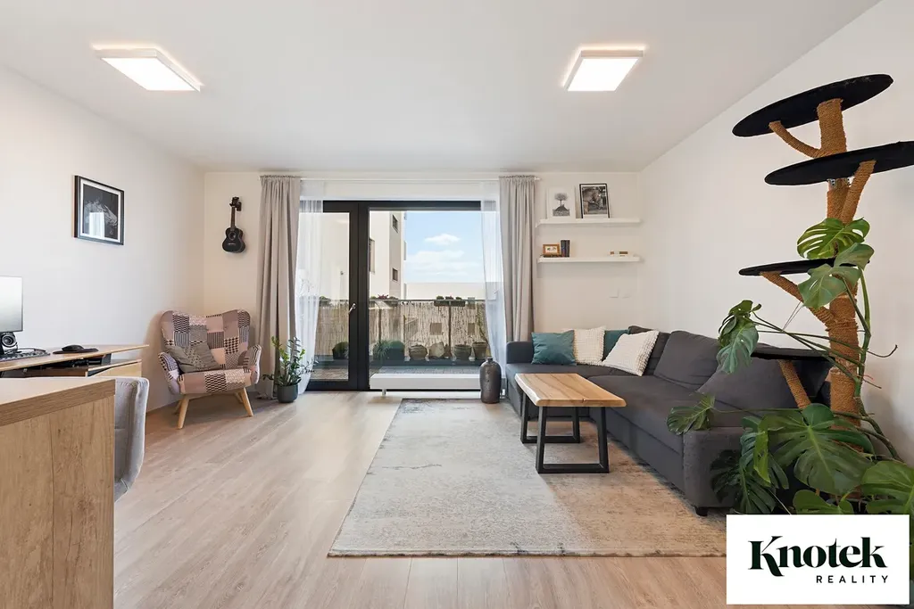 Byt o dispozici 2+kk má užitnou plochu 55,6 m² a patří k němu i nadstandardně velká terasa o výměře 69,6 m².