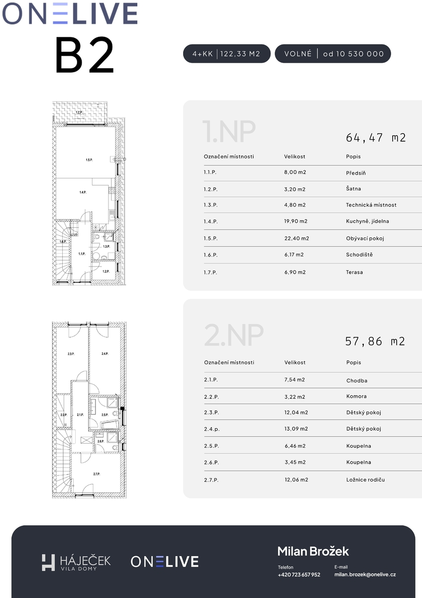 Na výběr jsou dvě varianty dokončení – SHELL & CORE a PREMIUM – v cenových hladinách od 10.530.000 Kč do 11.480.000 Kč. Detailní standardy provedení jsou k dispozici na webových stránkách projektu nebo Vám je rádi představíme při osobní schůzce v showroomu.