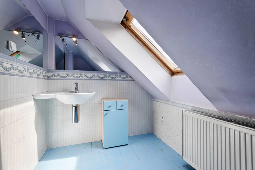Jakmile po schodišti vystoupáte z přízemí do prvního patra, nabídnou se vám útulné podkrovní místnosti. Je tu koupelna s vanou a další tři pokoje, sloužící aktuálně jako ložnice. První ložnici s dřevěnými trámy je možné stavebními úpravami proměnit na kuchyni. Při větších úpravách je tedy možné v domě vytvořit dvougenerační bydlení, zatímco ve své stávající podobě je ideální pro rodinu s dětmi, jež mohou mít v horní části své vlastní království.