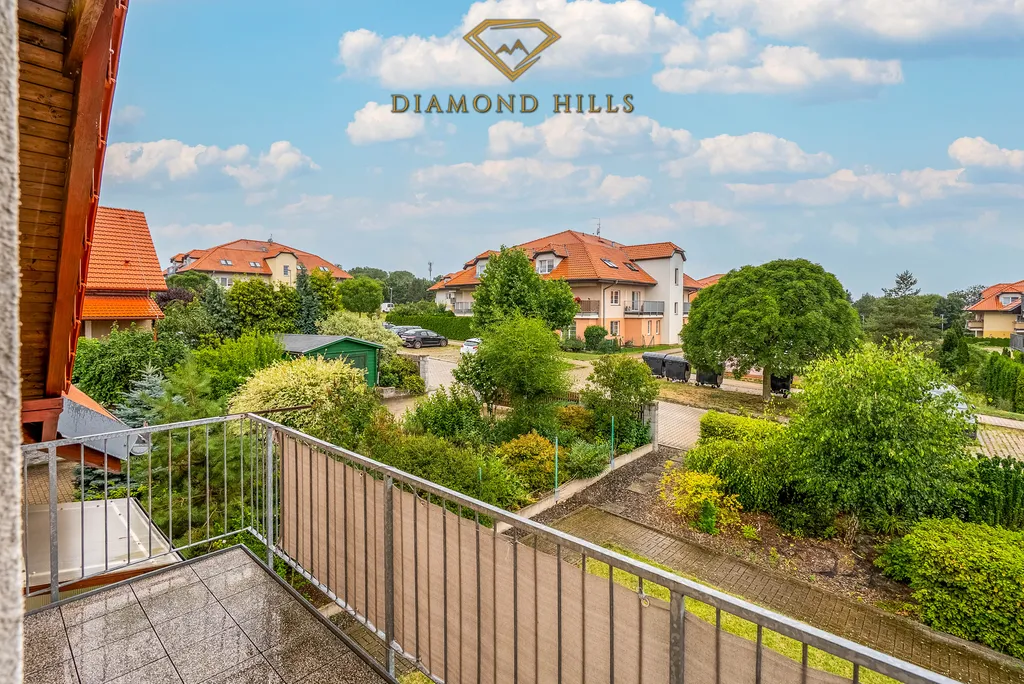 Ložnice má přímý vstup na balkon a krásný výhled na horu Říp. Druhý pokoj lze využít jako dětský pokoj, pracovnu nebo pokoj pro hosty. K dispozici je koupelna s vanou, samostatná toaleta a dostatek úložného prostoru.