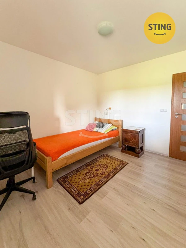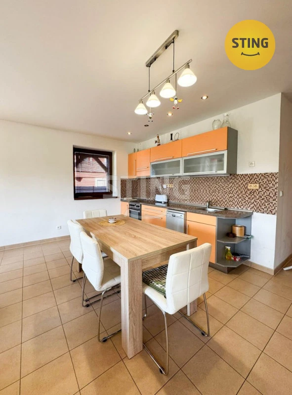 Jedná se o jednopodlažní bezbarierový rodinný dům, kde máme k dispozici zádveří, technickou místnost, 4 samostatné pokoje a obývací pokoj propojený jídelním stolem s kuchyní, dále máme prostornou koupelnu a 2x WC. Z obývacího pokoje je výstup na zastřešenou terasu a je zde umístěn krb. Dům je napojen na inženýrské sítě – plyn, voda, elektřina, kanalizace. Vytápění domu je zajištěno kondenzačním plynovým kotlem či krbem. Oba zdroje vytápění lze napojit na podlahové topení v domě. Ohřev vody zajišťuje kondenzační kotel či bojler napojený na krb. Dům je částečně vybaven. V přední části oploceného pozemku je prostor pro parkování aut, dále je možnost parkovat pod přístřeškem. Velmi dobrá dostupnost do Karviné, Havířova, Českého Těšína či Ostravy. Cena za měsíční nájem je 28.000,- Kč (+ 5.000,- kč plyn, elektřina, + čtvrtletně voda, + 54.000,- vratná kauce, + provize RK).