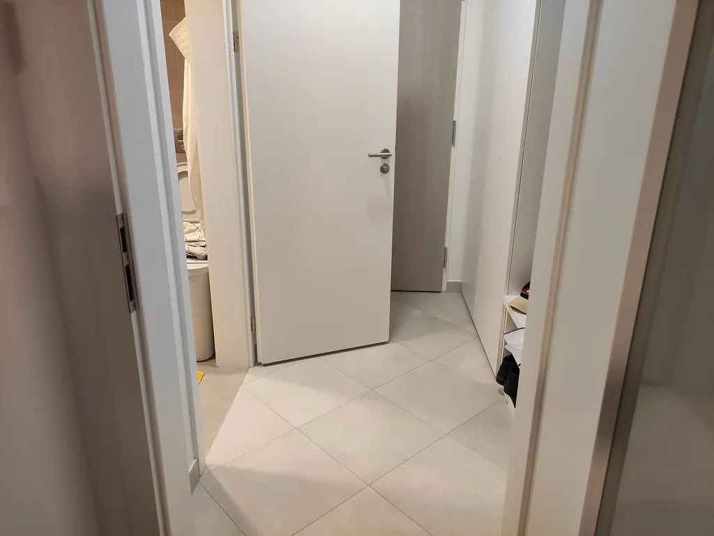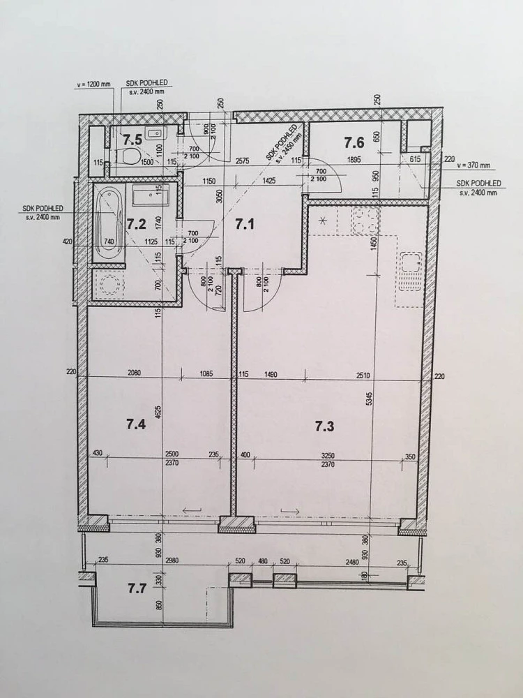 Koupelna se sprchovým koutkem. Okna směřují na jih.