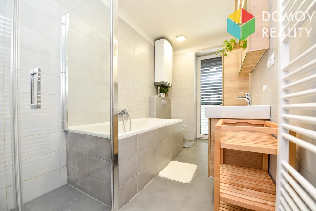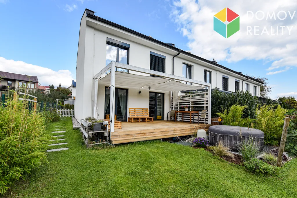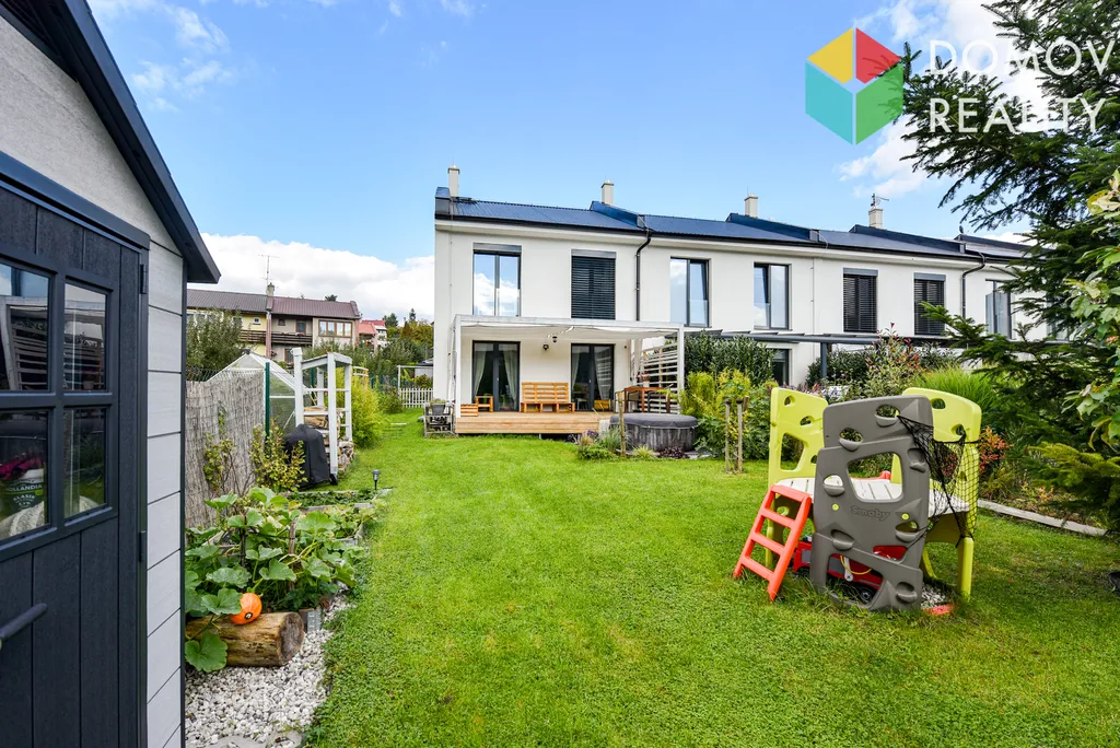 Kolaudace domu proběhla před 5 lety, je ve skvělé formě, stačí vymalovat a můžete se stěhovat. Užitná plocha domu je 102 m2, pozemek složený ze zpevněného prostoru před domem, zastavěné plochy a zahrádky za domem má výměru celkem 333 m2. Dům je napojen na obecní vodovod a tlakovou kanalizaci, dešťová voda je schraňována v retenční nádrži s čerpadlem na zalévání. Příjezd je po obecní komunikaci a po pozemku v podílovém spoluvlastnictví vlastníků řadových domů.