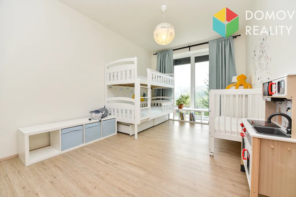 Dům má vše, co moderní rodina požaduje – prostorný světlý obývací pokoj, nadstandardně vybavenou kuchyňskou linku do tvaru U, 3 samostatné ložnice, 2 toalety, podlahové vytápění, krbová kamna, venkovní žaluzie a parkování na vlastním pozemku. Velkým francouzským oknem se dostanete na terasu a zahradu, odkud je výhled na zelené kopce nad Berounkou. Na pozemku je zahradní domek a sklad, které vyřeší úložné prostory. Další možnosti ukládat sezonní věci jsou na prostorné, částečně pochozí, půdě.