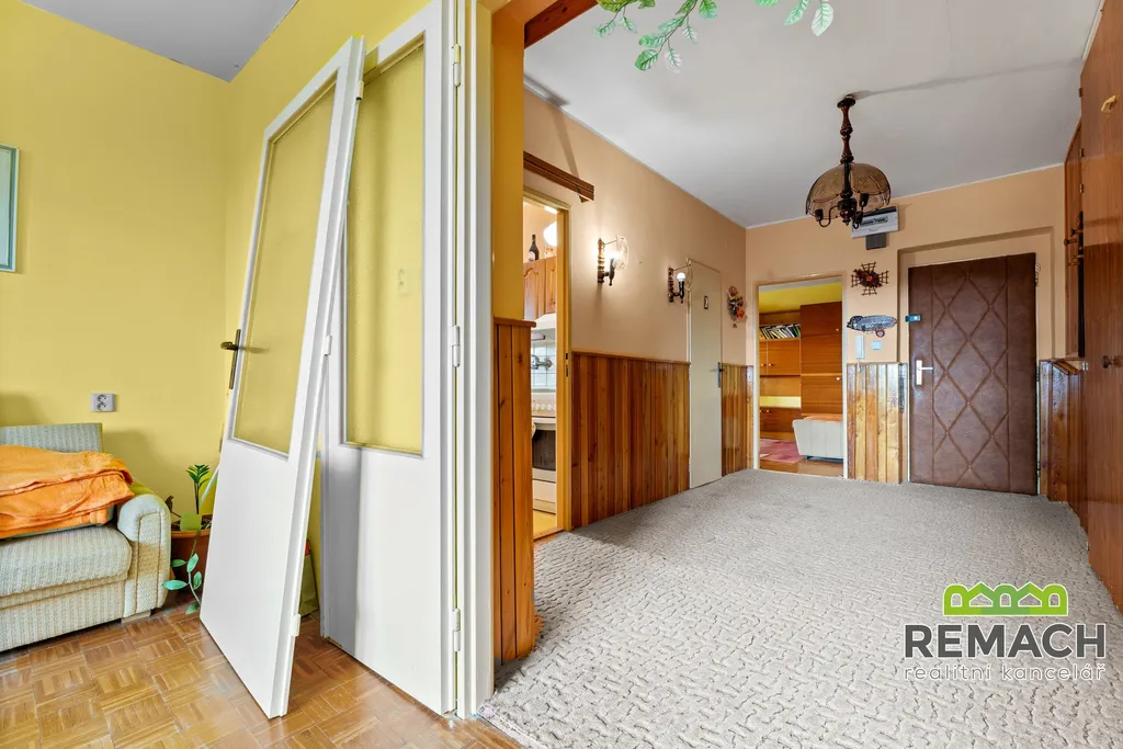 Byt disponuje třemi neprůchozími pokoji, což zajišťuje dostatek soukromí a pohodlí pro rodinu i spolubydlení. Součástí bytu je samostatná koupelna a oddělené WC, což zvyšuje komfort každodenního bydlení.