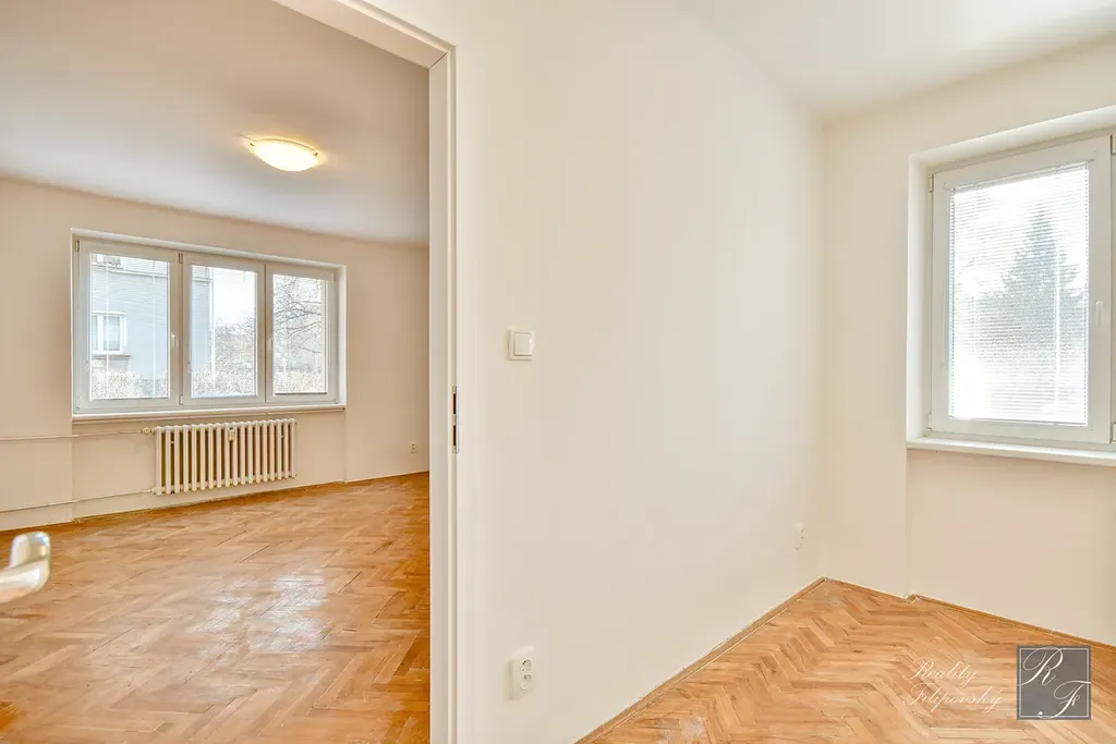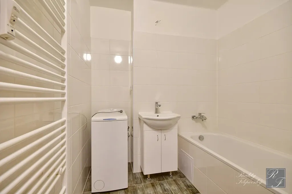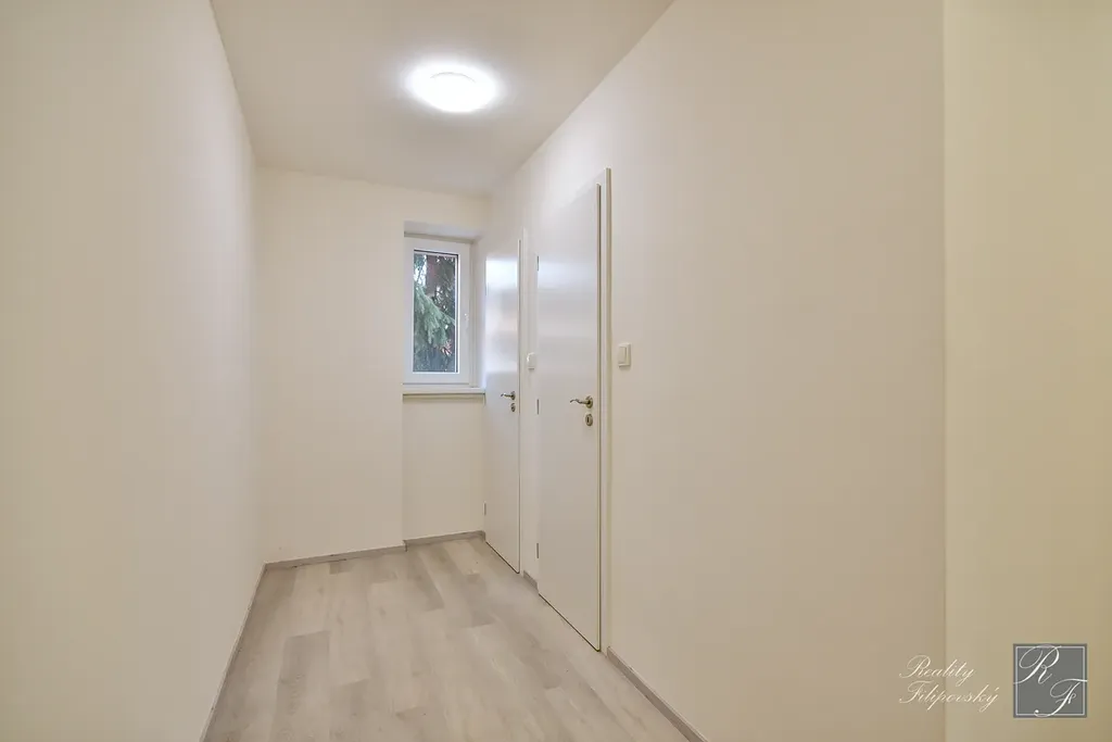 Byt právě prošel rekonstrukcí a budete tak prvními nájemci od jejího dokončení. Byt je vybaven kuchyňskou linkou s vestavnými spotřebiči a přípravou pro umístění myčky nádobí. Dále je součástí vybavení lednice s mrazákem, spížní skříň a automatická pračka. Byt je velmi dobře dispozičně řešen a nabízí spoustu místa pro úložné prostory. Na podlahách jsou parkety a dlažba.