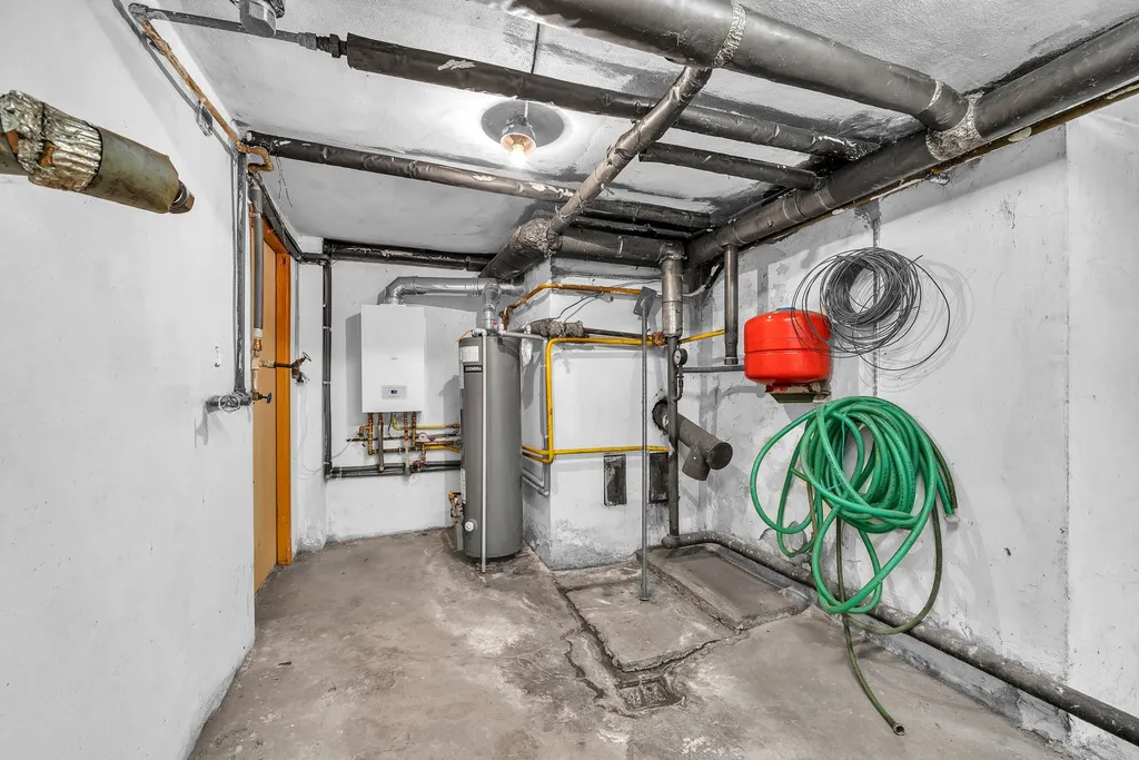 Vytápění je řešeno plynovým kotlem, ohřev vody zajišťuje elektrický bojler.