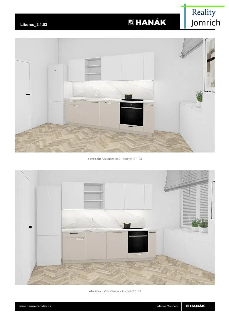 Pronájem nového bytu 1+1 s možností parkování u domu, ca 39 m2, v 2.NP., v centru Liberce, Moskevská ul. 22/13, Liberec.